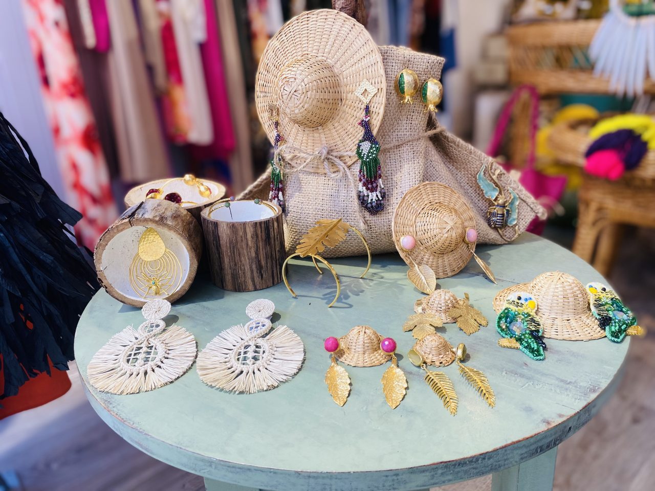 Mención especial merecen los complementos, de los que hay verdaderas maravillas. “Ahí sí que me he preocupado de tener una oferta muy especial, piezas hechas a mano por artesanas y artesanos del sector, los pendientes de cuentas en forma de pájaros o de flores, o los capazos profusamente adornados”, dice María.